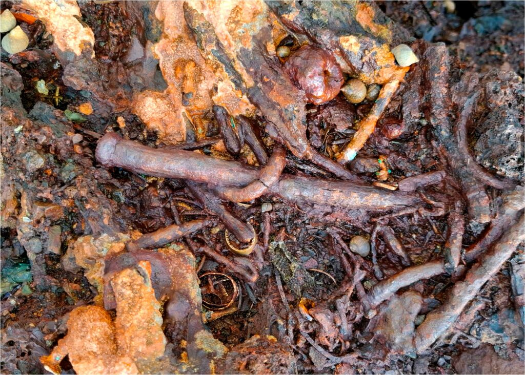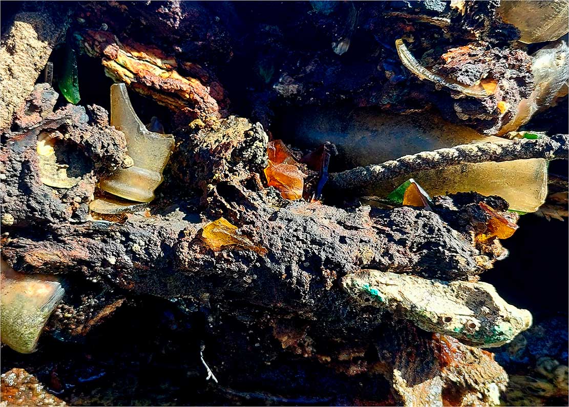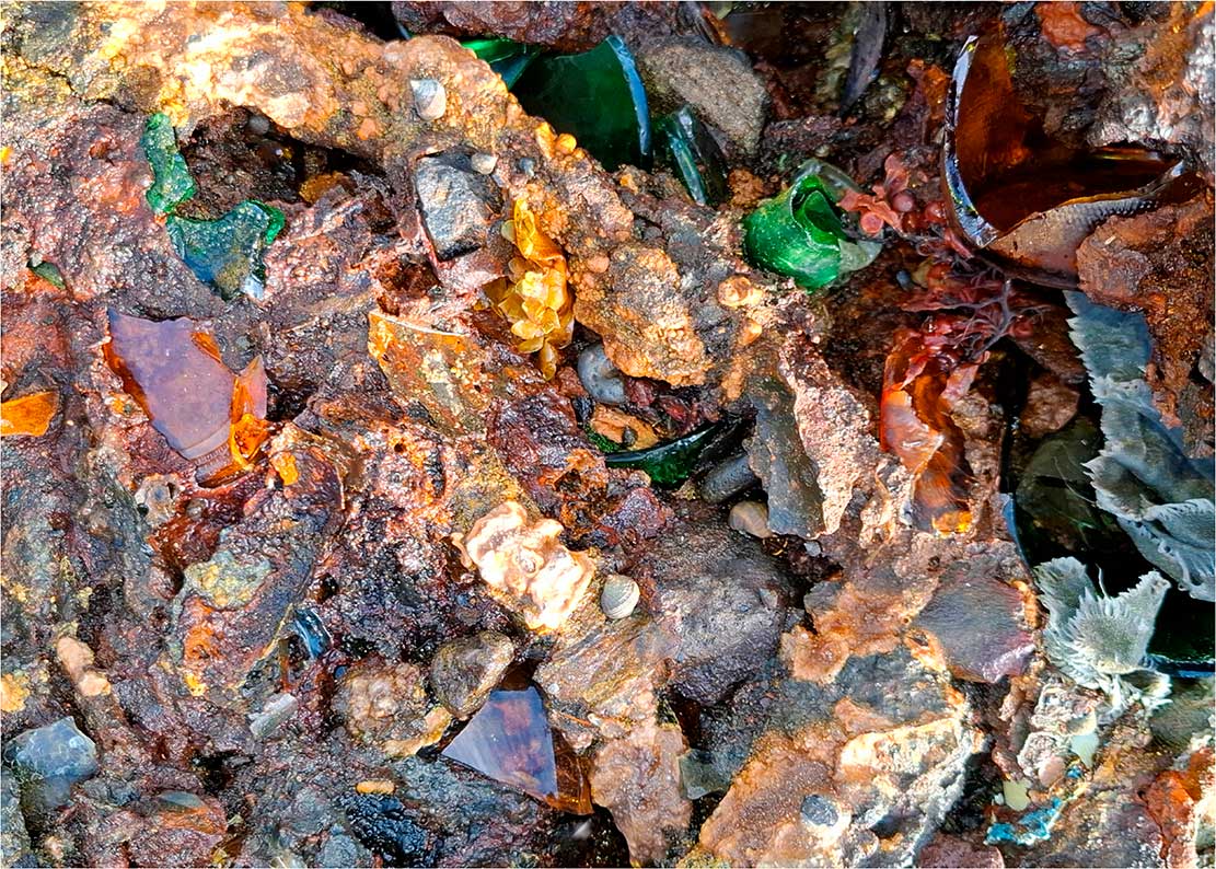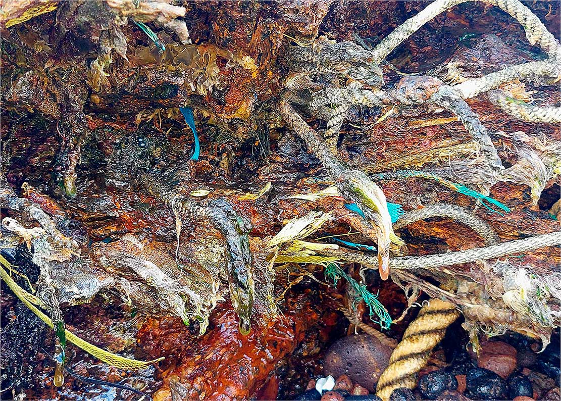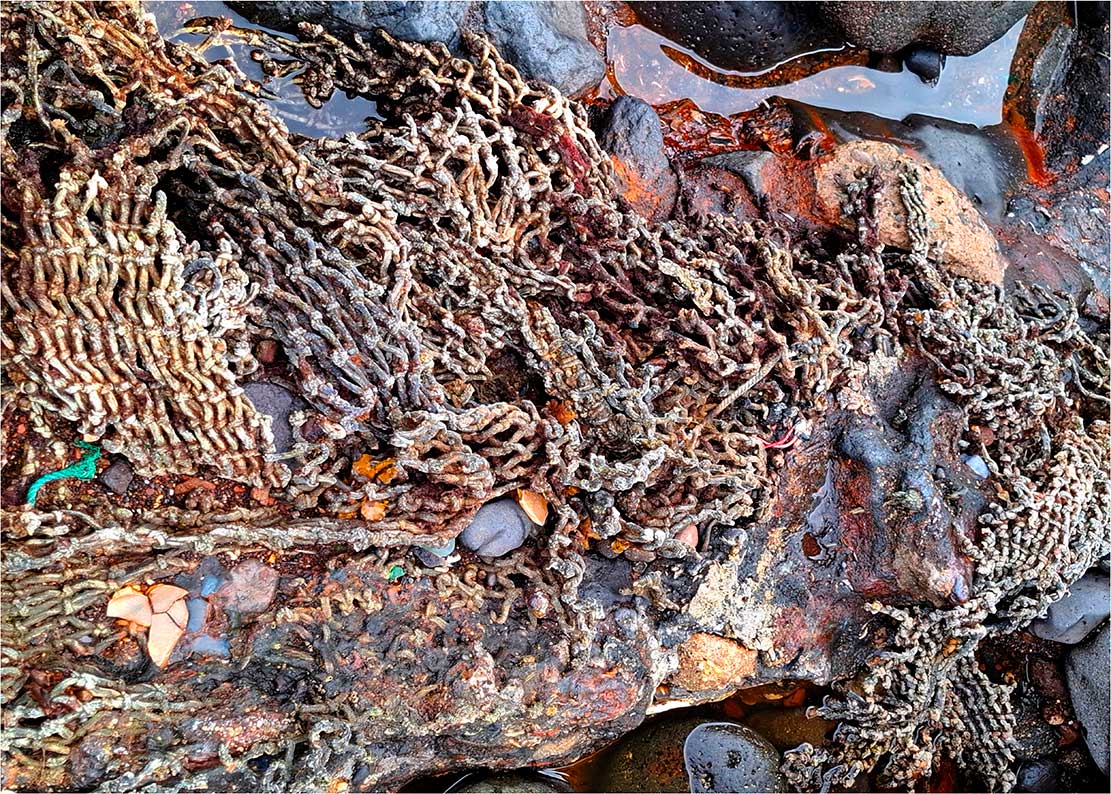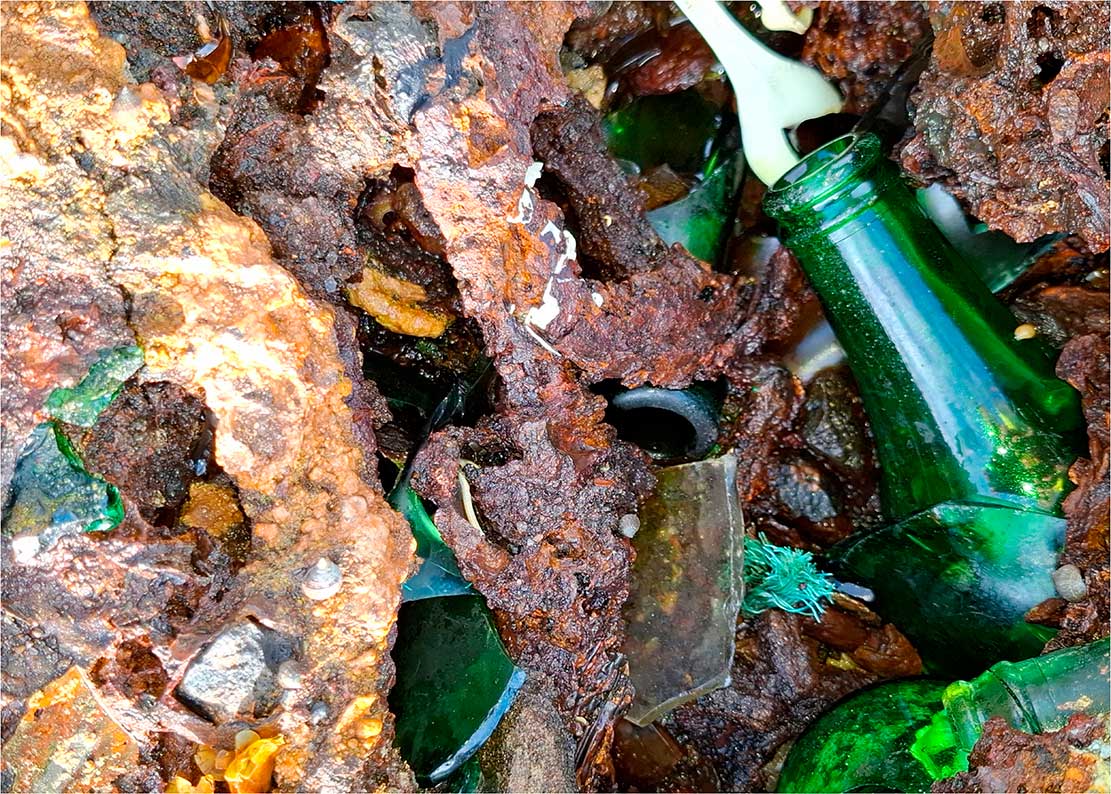 La sección «Capas del Presente» cierra el recorrido temático de Arqueologías del Antropoceno: fragmentos de un planeta herido. Compuesta por estratos fotográficos con residuos integrados, esta serie de imágenes establece la mirada fundamental del proyecto: la documentación de la huella humana como capa geológica.