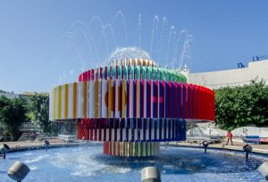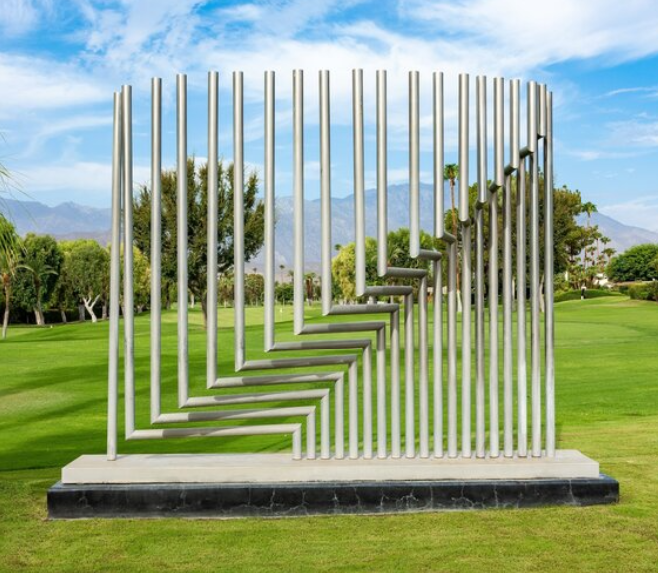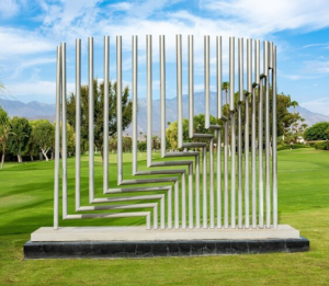 La escultura no se completa en sí misma: se activa cuando alguien se mueve.
